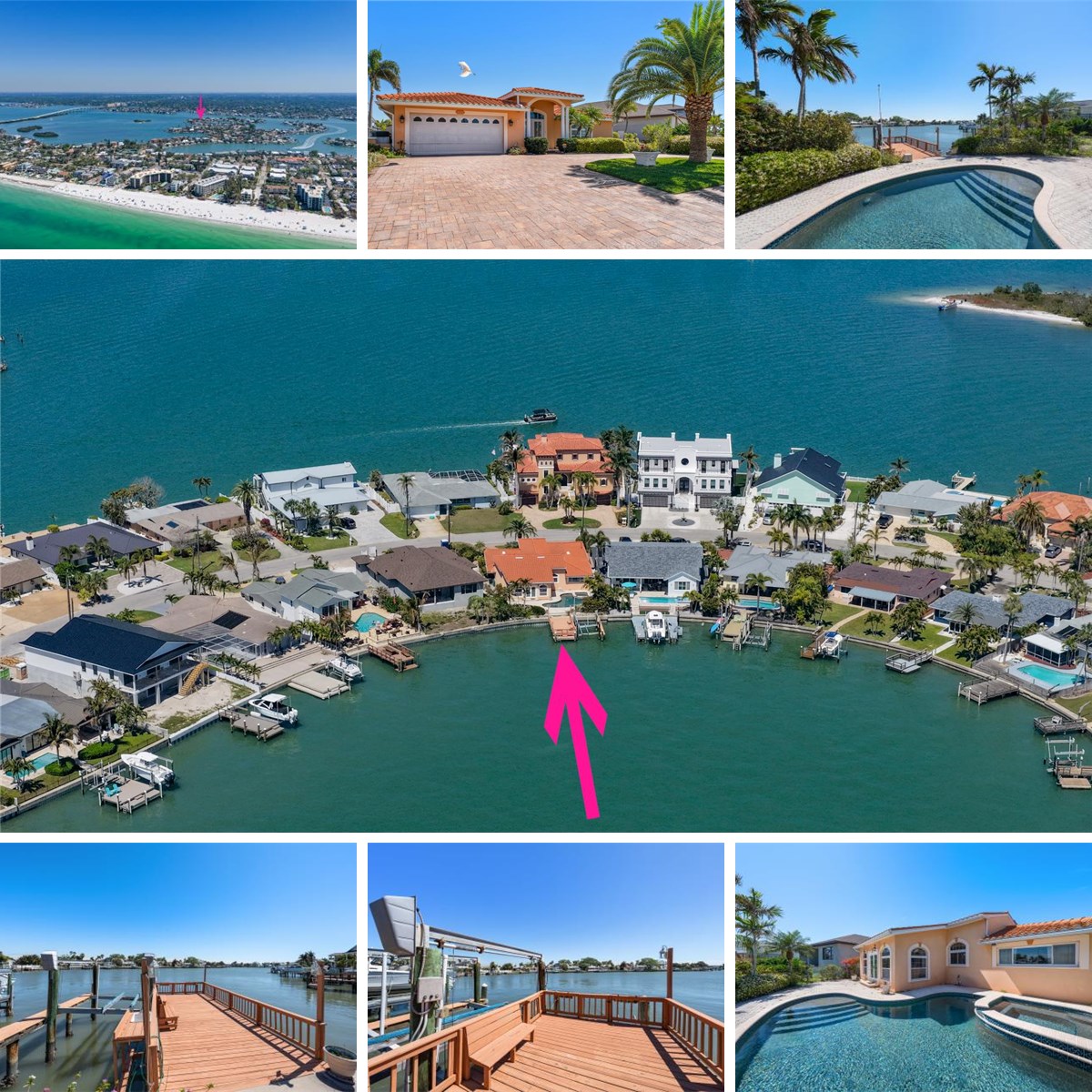 Perfectly positioned along the tranquil waterfront of Indian Rocks Beach, this Mediterranean-inspired residence captures the essence of relaxed coastal luxury. From the moment you arrive, a pavered circular driveway and grand double entry doors create striking curb appeal and a warm welcome. Inside, the home is open and filled with natural light, offering a thoughtfully designed layout that includes a dedicated office and a cozy formal living room anchored by a charming brick fireplace. The heart of the home is a beautifully appointed kitchen featuring granite countertops, a breakfast bar, and a center island, all seamlessly connected to a spacious family room with soaring vaulted ceilings, custom built-ins, and dramatic floor-to-ceiling windows that frame the breathtaking water views. French doors lead to an outdoor paradise where a sparkling pool and spa overlook the serene waterfront—perfect for entertaining, unwinding, or simply enjoying the sights of dolphins and manatees passing by. Spend your mornings on the water and your afternoons poolside, embracing the very best of Florida living. The split bedroom floor plan offers privacy, with a spacious primary suite filled with natural light, a walk-in closet, and an ensuite bath complete with double sink vanity, abundant storage, and a walk-in shower. Additional bedrooms are generously sized with ample closet space and share a well-appointed hall bath with a tub/shower combination. Enhanced by features such as crown molding and central vacuum, this home blends comfort with convenience. Ideally located near local shops, dining, and the area’s famous white sand beaches, with easy access to the mainland via the nearby Belleair Causeway, this exceptional waterfront retreat offers an unmatched coastal lifestyle.